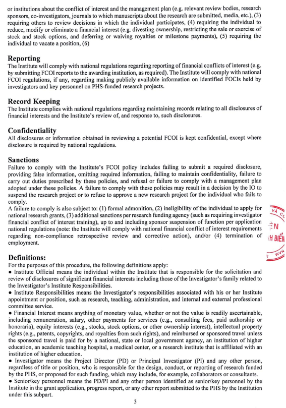 Financial Conflict of Interest Policy on 09 Tháng 4 2021. Full article can be downloaded hereCác bài viết khác: Thông báo về việc tuyển dụng viên chức năm 2023 Thư mời báo giá dịch vụ thuê xe ô tô (Công văn 259/HSB) Thư mời cung cấp báo giá dịch vụ thẩm định giá (Công văn số 256/HSB) Tổ chức hoạt động hưởng ứng ngày chuyển đổi số quốc gia năm 2022 CUỘC THI “TÌM KIẾM GIẢI PHÁP CHUYỂN ĐỔI SỐ QUỐC GIA - VIET SOLUTIONS” NĂM 2022